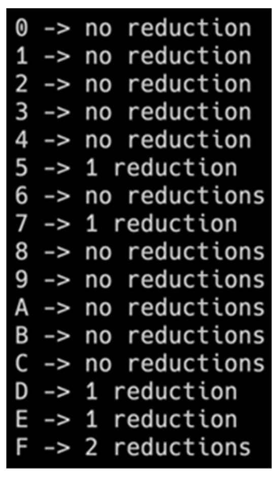 Considering a fine-tuning of the result above, the next algorithmic approach proposes a reduction of Ubertooth LAP decoding errors that might appear when a packet is received. As shown previously, a human agent could recognize that some of the LAPs that are recorded as different derive from the same LAP. To fix this programmatically, a metric was introduced that provides the number of bits that must be flipped to proceed from one address to another. A threshold value was implemented to dictate if the substitution was considered valid or not. Using this method, the number of correctly interpreted addresses further decreased. To ease the calculations, this filtration was applied on every subset of LAPs beginning with a hex letter from 0 to F. Figure 6 shows the result of executing this algorithm on every remaining address.