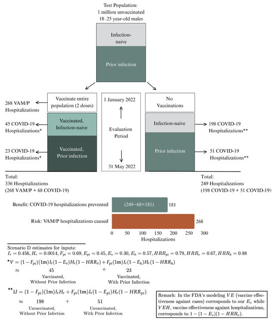 Background: The U.S. Food and Drug Administration (FDA) conducted a benefit–risk assessment for Moderna’s COVID vaccine mRNA-1273 prior to its full approval, announced 31 January 2022. The FDA’s assessment focused on males 18–64 years old because its risk analysis was limited to vaccine-attributable
